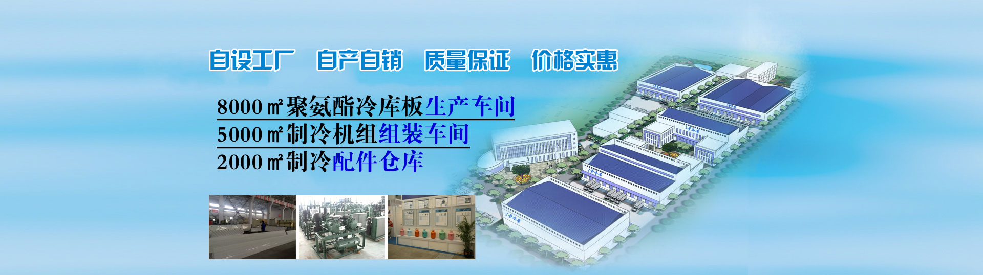 自設(shè)8000平方聚氨酯生產(chǎn)車(chē)間、5000平方制冷機(jī)組組裝車(chē)間真正做到自產(chǎn)自銷(xiāo)、讓利客戶(hù)。